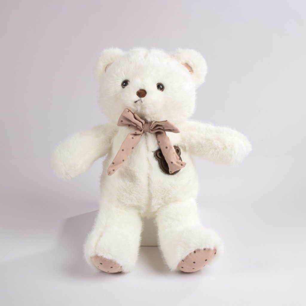 Hermoso peluche de oso de 35 cm, con un diseño tierno y elegante que incluye un moño decorativo y un pequeño corazón colgante en su cuello. Su textura suave y su estilo encantador lo convierten en el regalo perfecto para sorprender en ocasiones especiales como cumpleaños, aniversarios o fechas románticas. Ideal para expresar cariño con un detalle especial.