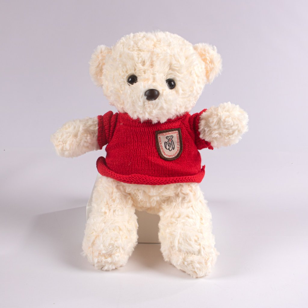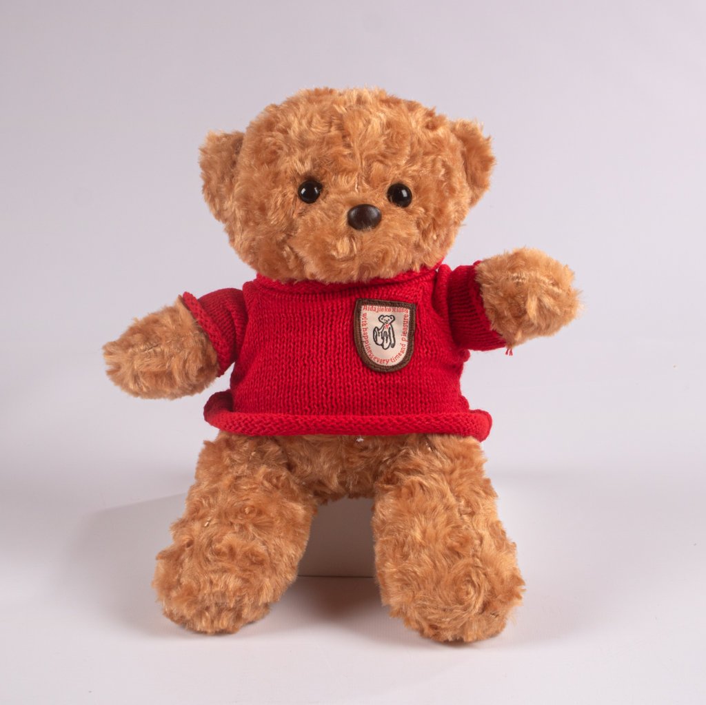 Encantador peluche de oso de 30 cm, con un diseño tierno que incluye un suéter rojo con detalle decorativo. Su estilo cálido y su textura suave lo convierten en el compañero perfecto para regalar, decorar o acompañar momentos especiales. Ideal para transmitir cariño y ternura en cualquier ocasión.