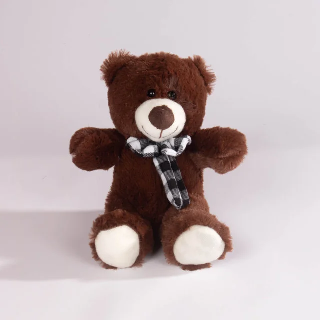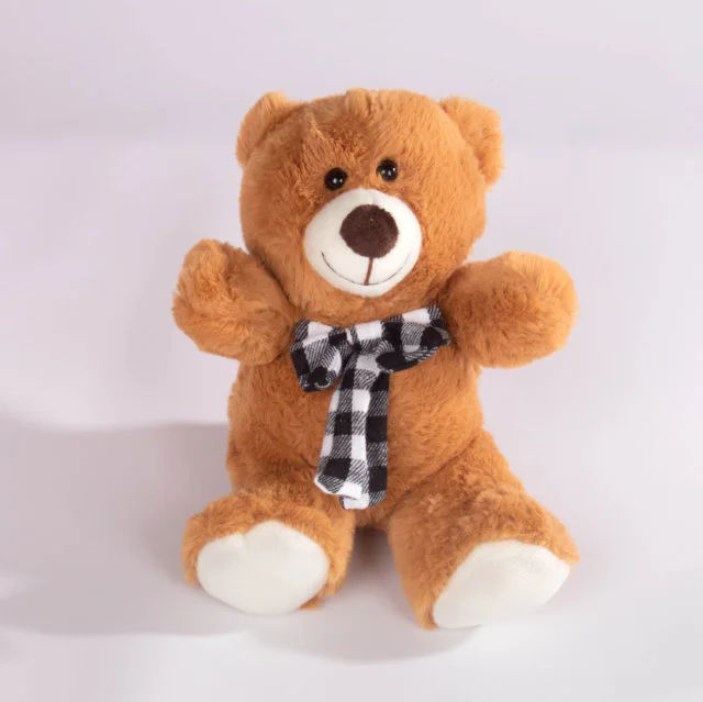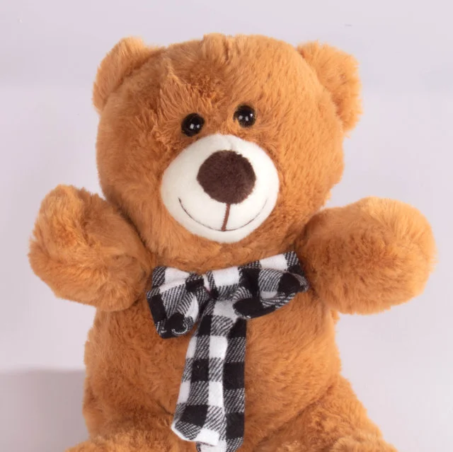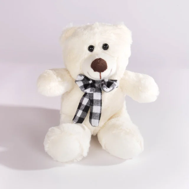 Oso de peluche mediano con lazo a cuadros en blanco y negro, ideal para transmitir cariño y estilo. Su diseño clásico y su textura suave lo convierten en un regalo perfecto o en un complemento decorativo para cualquier ocasión.