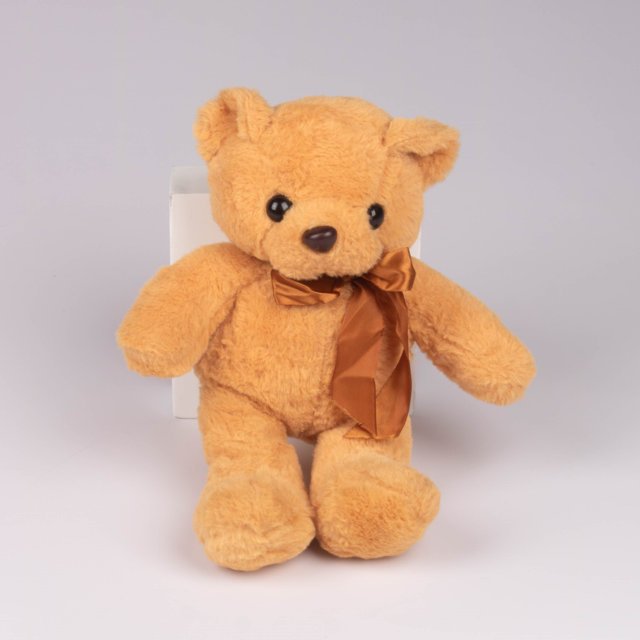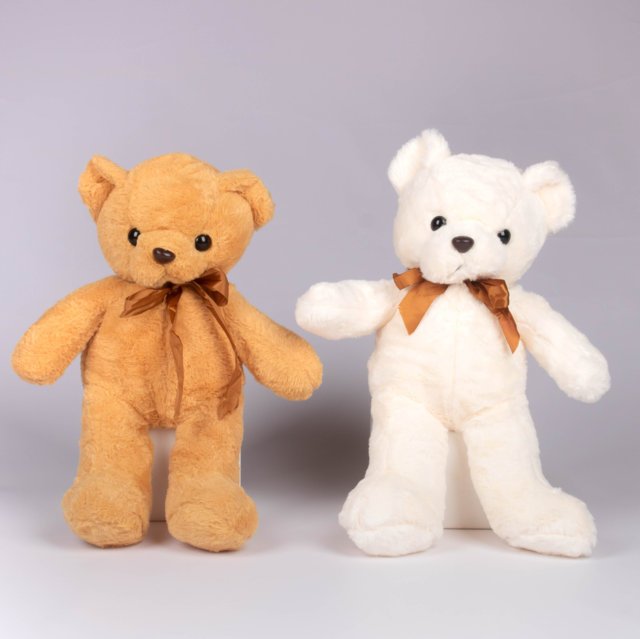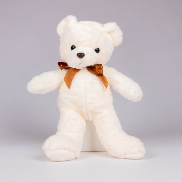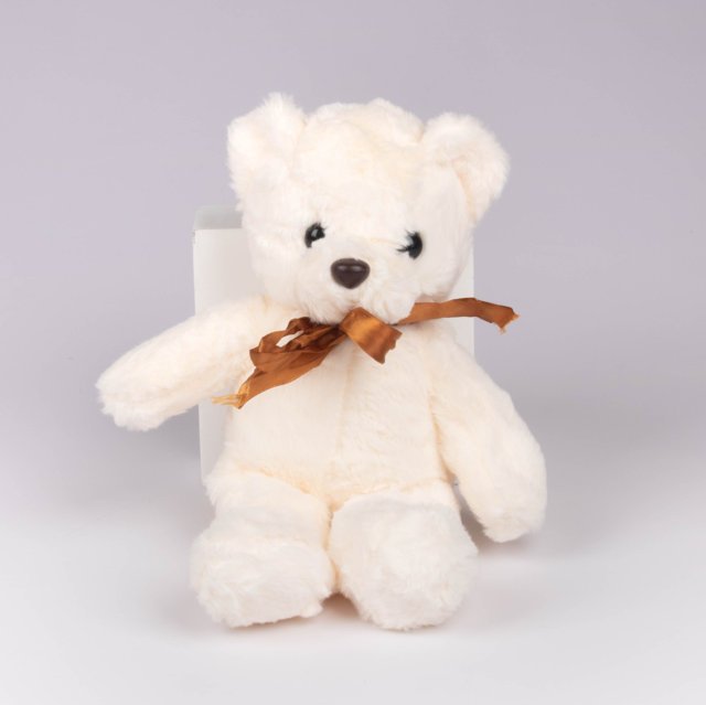 Peluche de oso con diseño clásico y tierno, acompañado de un elegante corbatín de tela. Suave al tacto y de tamaño práctico de 33 cm, es ideal como regalo especial, decoración o compañero de juegos. Disponible en colores café y blanco, combina ternura y estilo en un solo detalle.