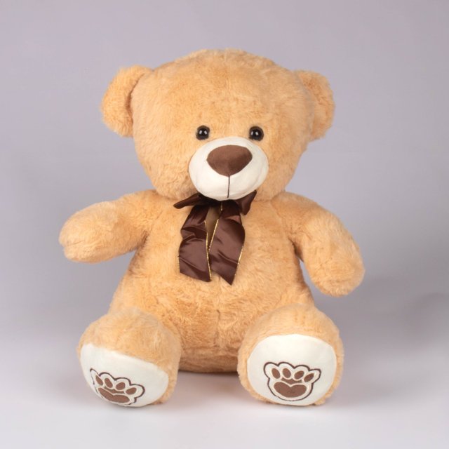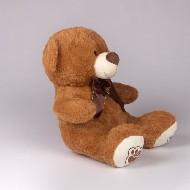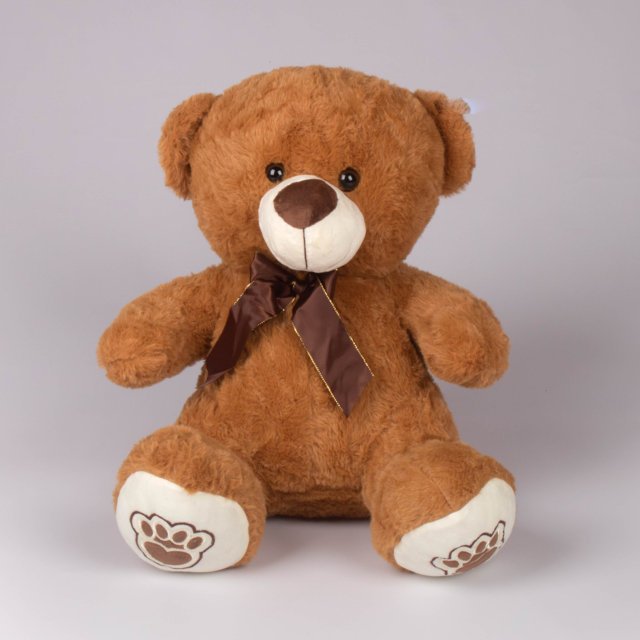 Peluche de oso de 40 cm con diseño elegante y encantador. Disponible en dos colores: café y beige. Destaca por su corbatín con detalles dorados que le da un toque sofisticado, además de sus patas decoradas con bordados en forma de huellas, aportando un acabado único. Suave y esponjoso, es perfecto para regalar o para complementar la decoración de espacios infantiles y románticos.