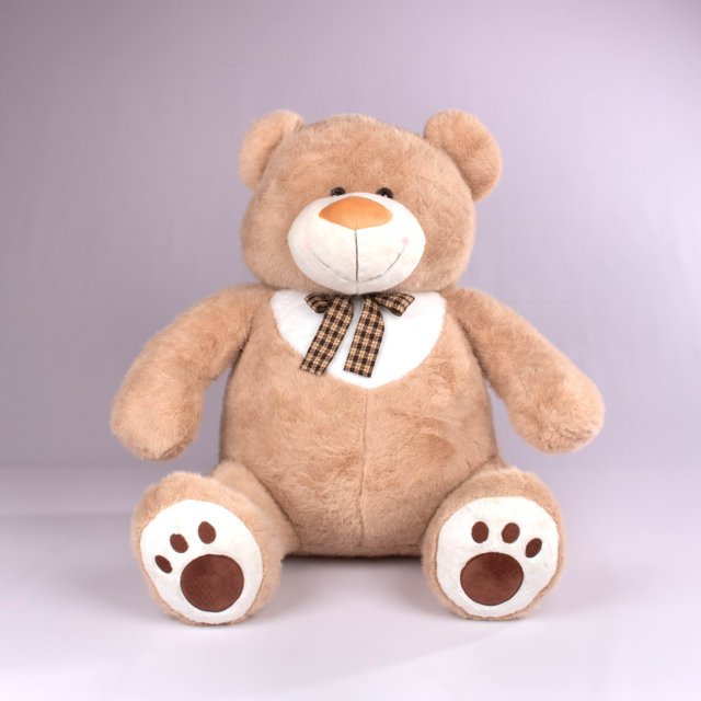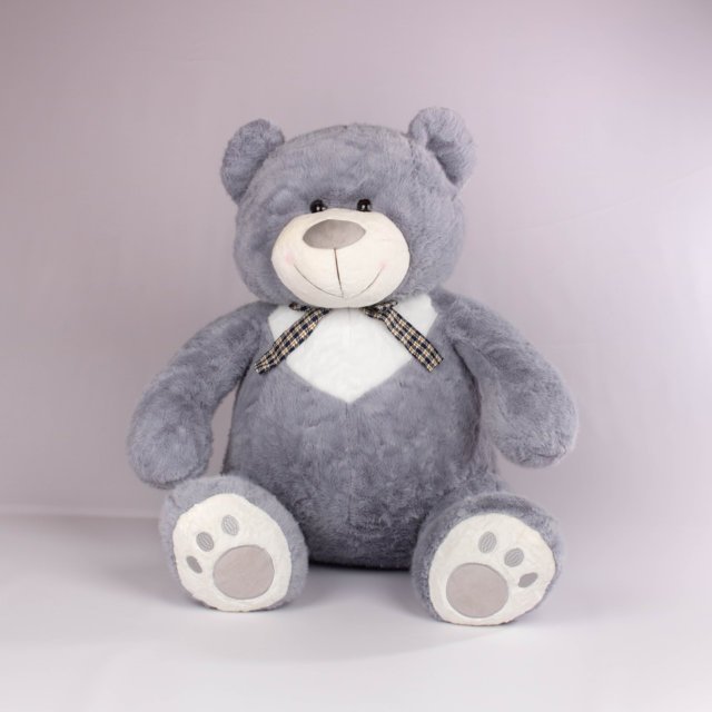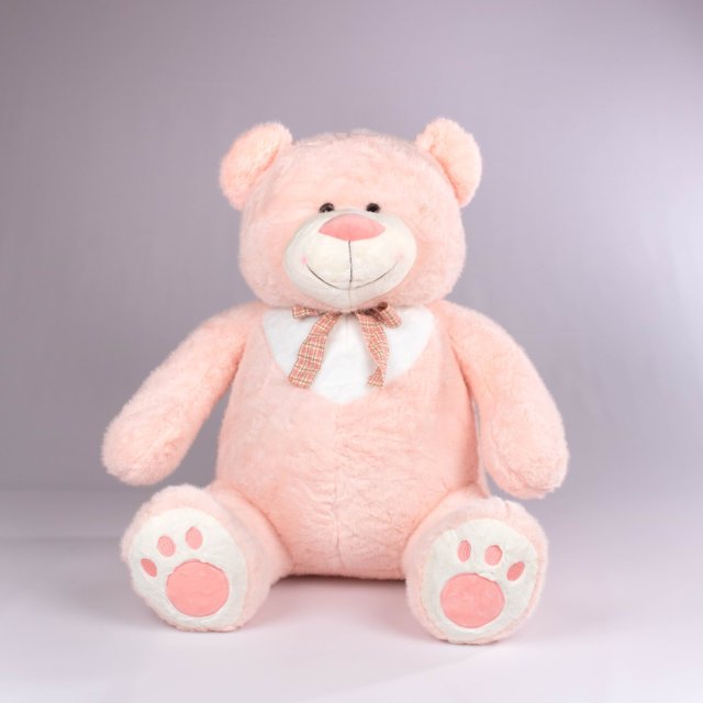 Peluche de oso de 75 cm con un diseño clásico y tierno, perfecto para regalar o decorar. Disponible en tres colores: café, rosado y gris. Destaca por su corbatín de cuadros en tonos neutros y sus patas bordadas con la silueta de huellas, que le aportan un toque encantador y detallado. Su textura suave y esponjosa lo convierte en el compañero ideal para abrazar o ambientar espacios con calidez.