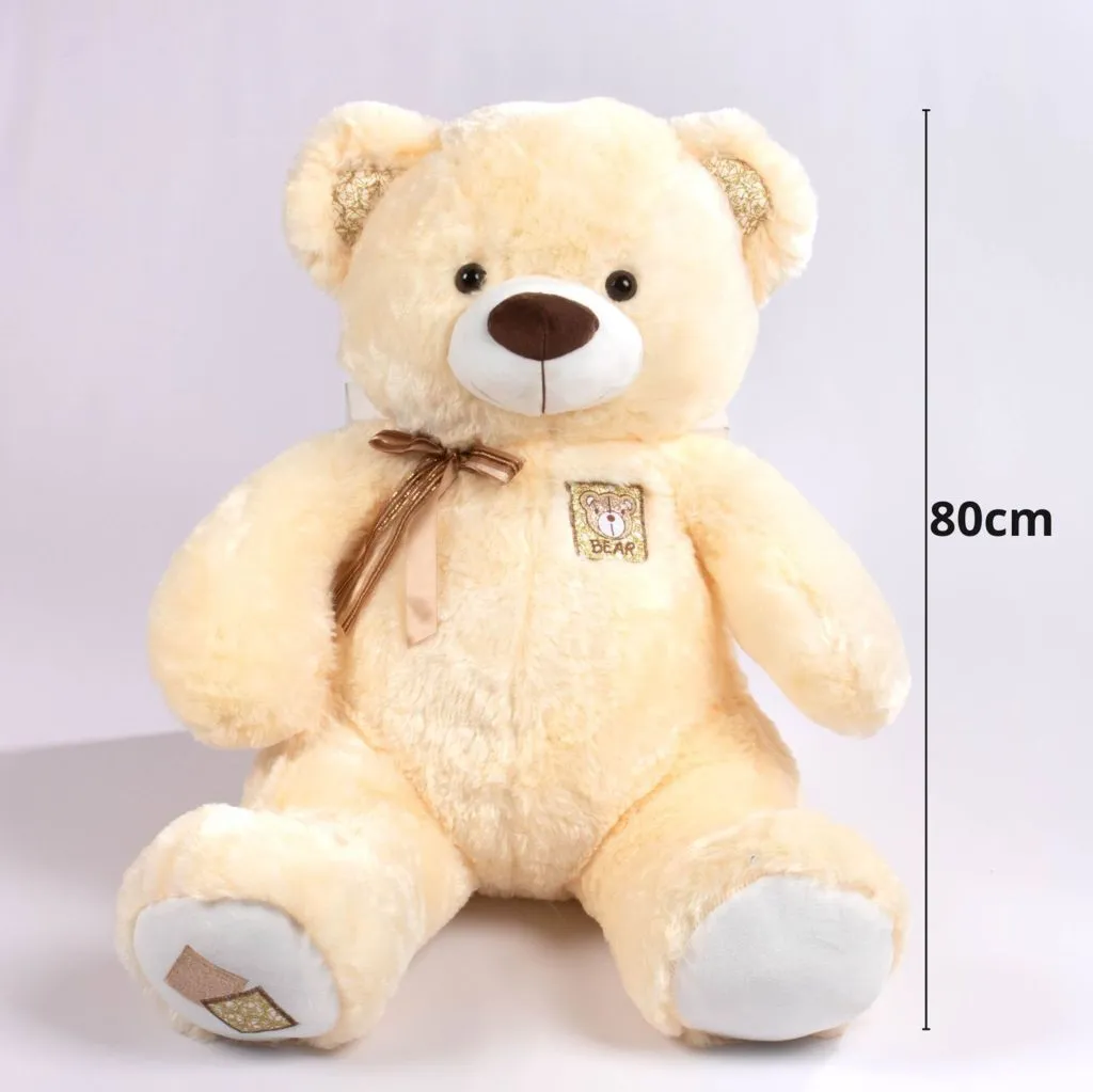 Un tierno oso con corbatín que se roba las miradas por su dulzura y tamaño. Con sus 80 cm de suavidad, es el acompañante perfecto para regalar y abrazar en cualquier momento especial.