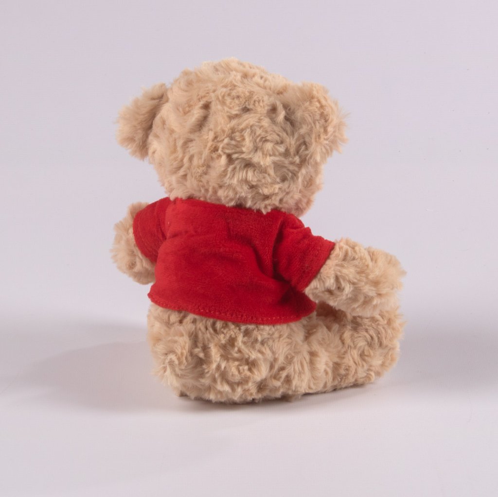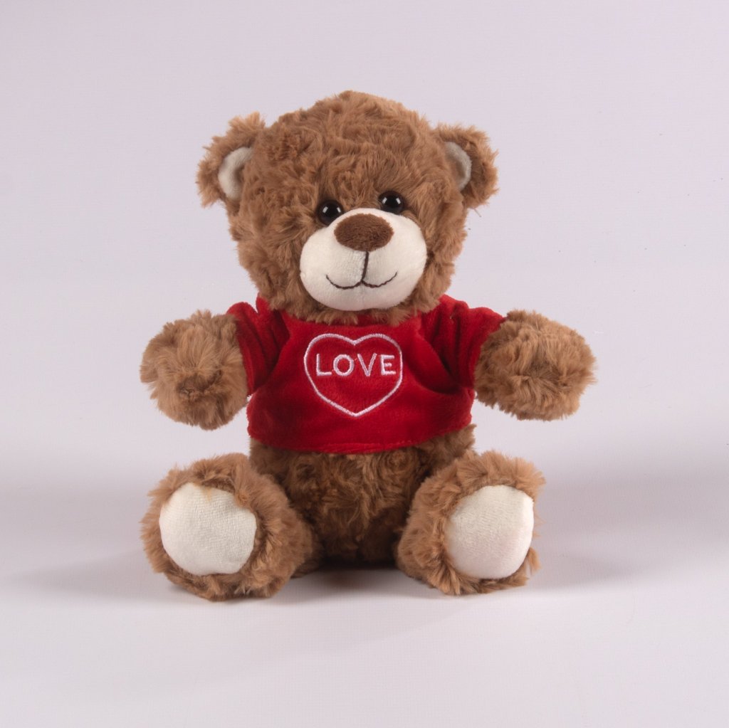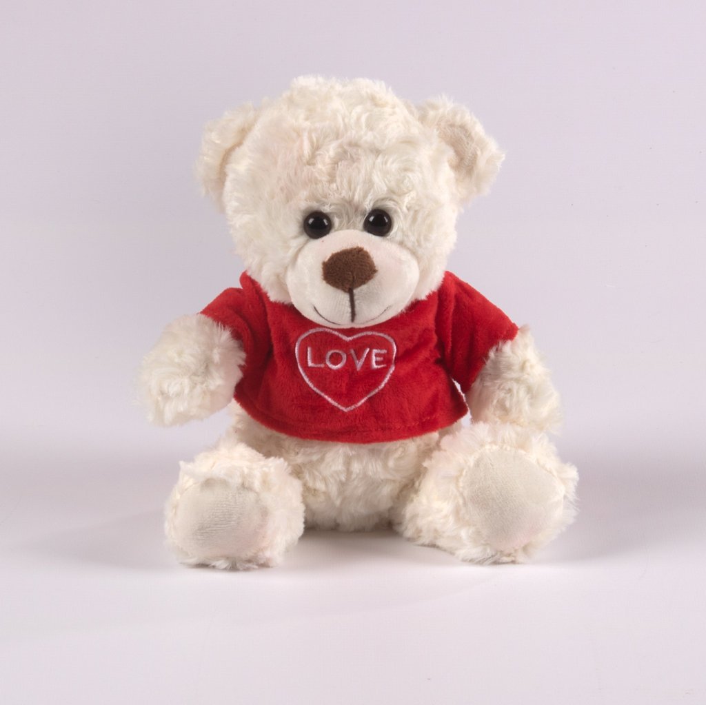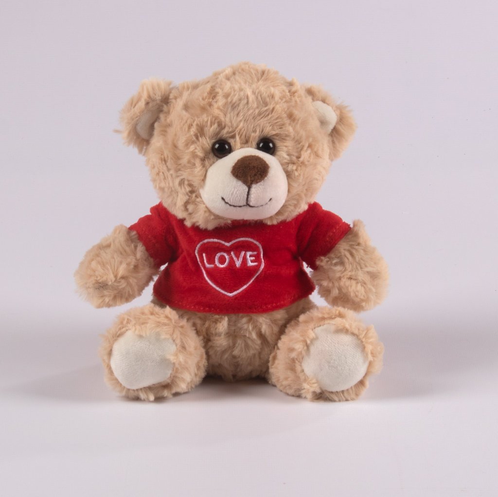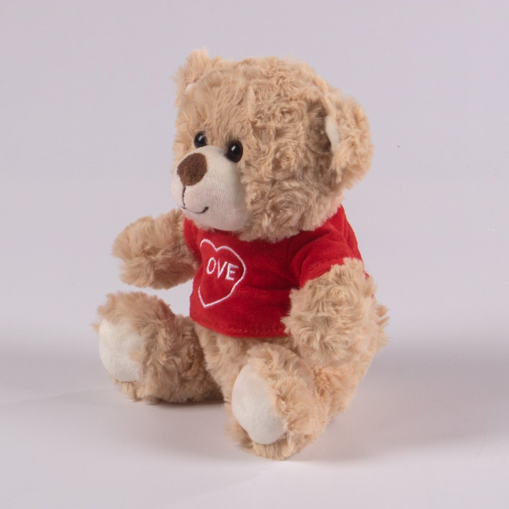 Tierno peluche de oso de 20 cm con camiseta roja estampada con la palabra “LOVE”, ideal para expresar cariño de una forma dulce y especial ❤️. Su diseño clásico y su textura suave lo convierten en el detalle perfecto para sorprender en ocasiones como San Valentín, aniversarios o cualquier momento especial.