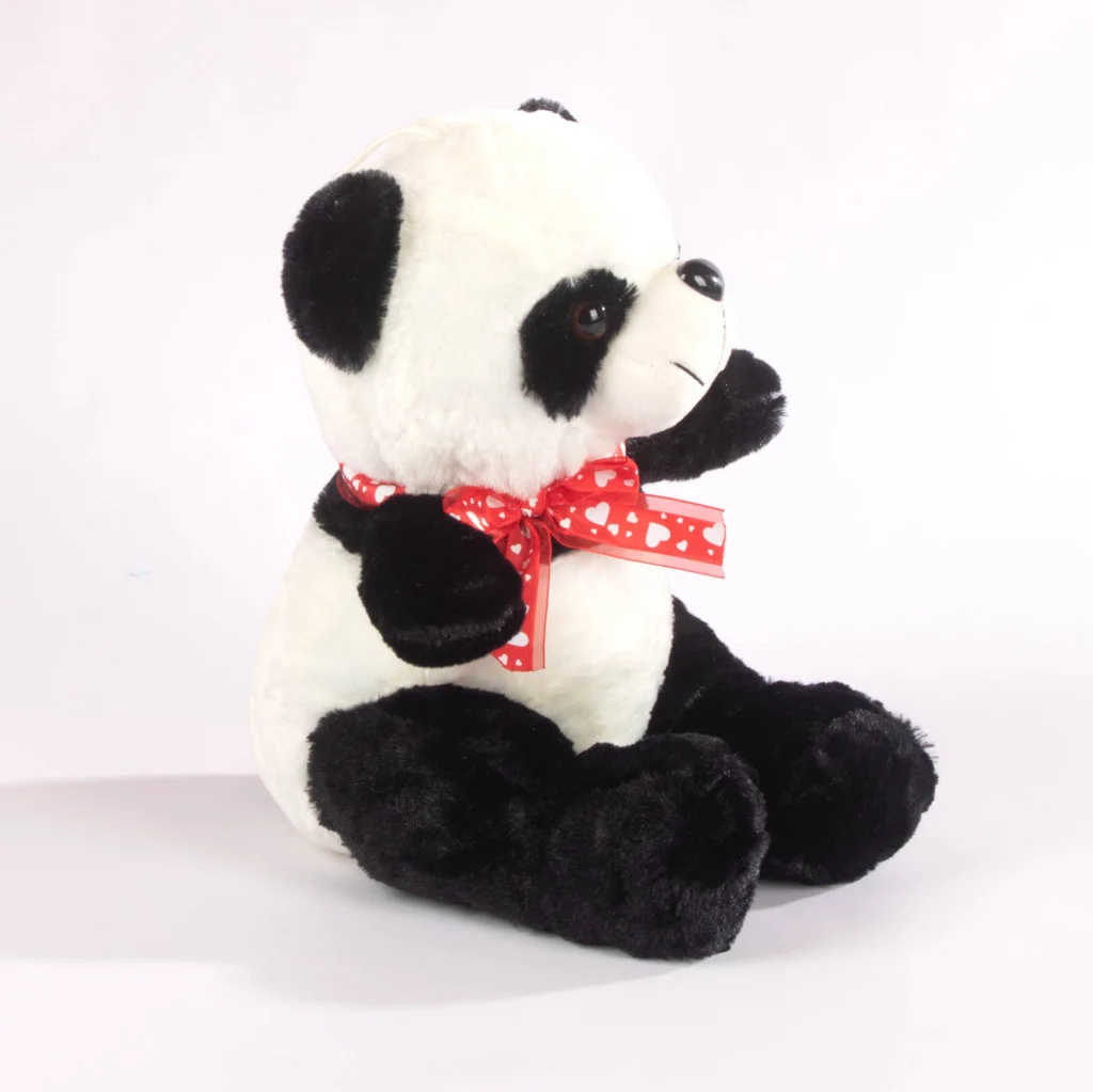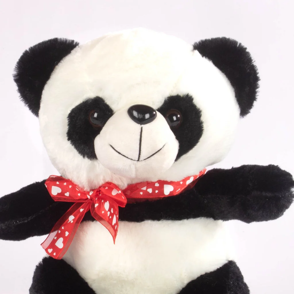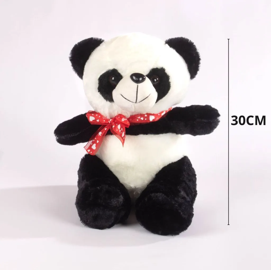 Este adorable peluche de oso panda de 30 cm luce un elegante corbatín que resalta su encanto natural. Con su diseño clásico en color blanco y negro, es perfecto para quienes aman los detalles tiernos y sofisticados. Su tamaño mediano lo convierte en un regalo ideal y en una linda decoración para cualquier espacio.