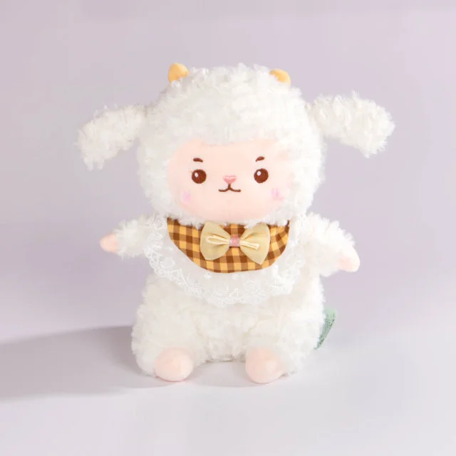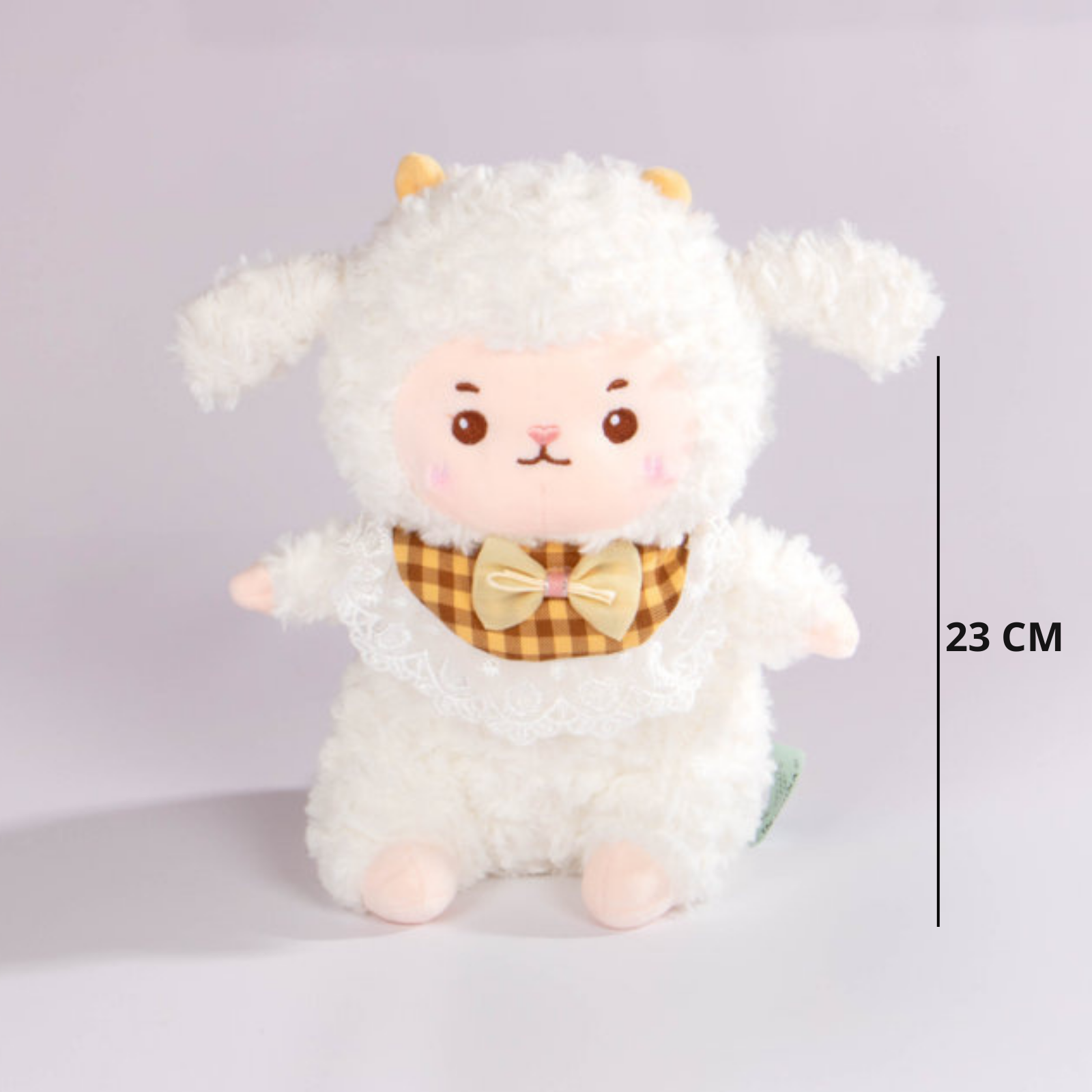 Un tierno peluche de oveja con una encantadora pañoleta, ideal para regalar en cualquier ocasión o decorar espacios con dulzura. Su diseño suave y abrazable lo convierte en un compañero perfecto para todas las edades.