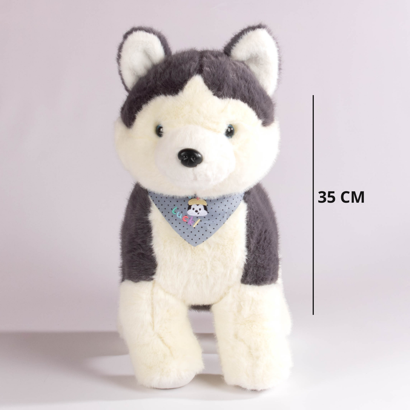 Este adorable perrito de peluche siberiano viene acompañado de una pañoleta que lo hace aún más tierno. Su textura suave lo convierte en el compañero ideal para abrazar, jugar o decorar cualquier espacio. Es el regalo perfecto para los amantes de los peluches y los animales.
