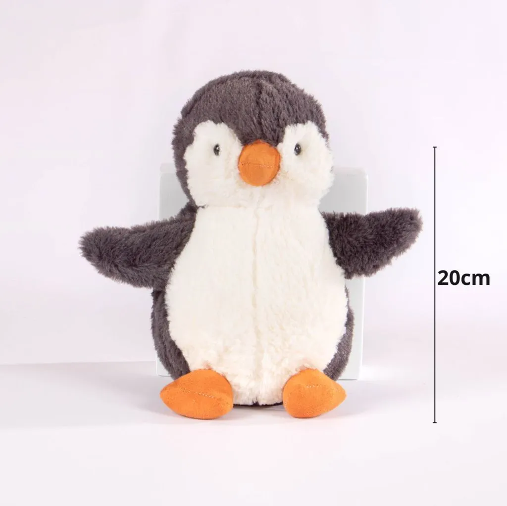 El peluche pingüino clásico de 20 cm está diseñado en un único color que resalta su ternura y encanto. Su apariencia suave y simpática lo convierte en el compañero ideal para cualquier edad. Es un detalle perfecto para expresar cariño en cualquier ocasión, ya sea como regalo o decoración.