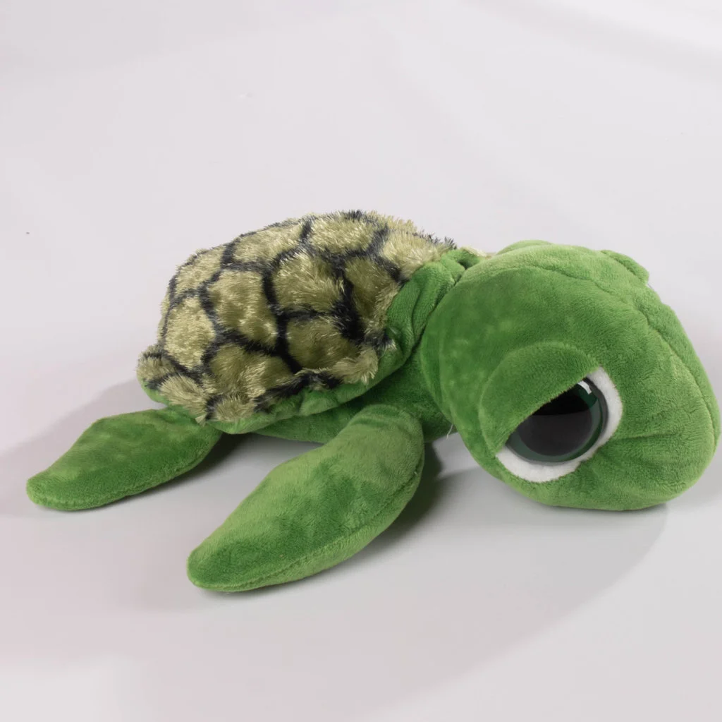Este adorable peluche de tortuga destaca por su caparazón con un patrón detallado que imita la apariencia real de una tortuga. Suave y encantador, es ideal para quienes disfrutan de los animales marinos y buscan una compañía tierna y decorativa.