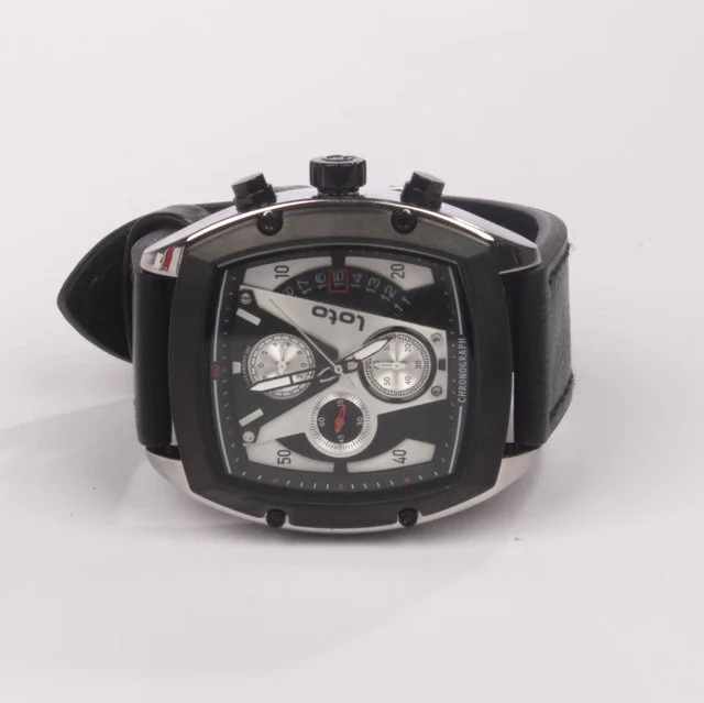 Reloj Loto original análogo con cronógrafos funcionales, diseñado para quienes buscan un accesorio moderno y versátil. Su caja metálica con detalles en tonos contrastantes y su pulso tipo cuero lo convierten en un reloj elegante y resistente. Disponible en color negro con detalles plata, negro con detalles azul y oro rosa, y negro con detalles en blanco. Incluye 6 meses de garantía por maquinaria y pila que respaldan su calidad y funcionamiento.