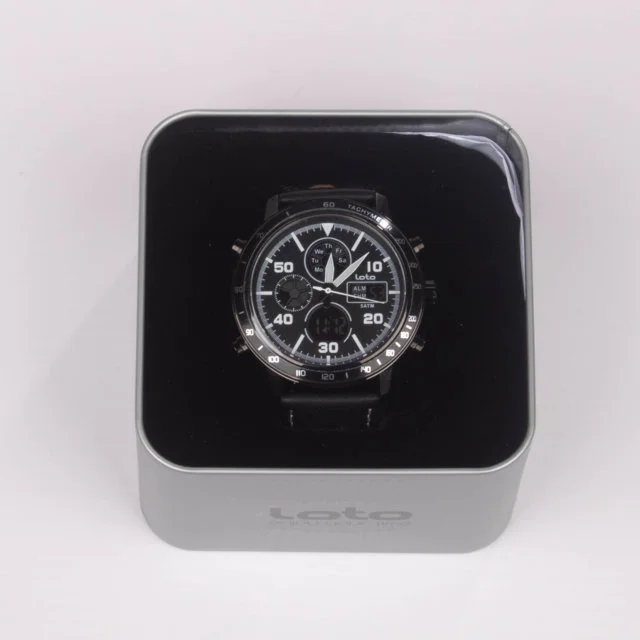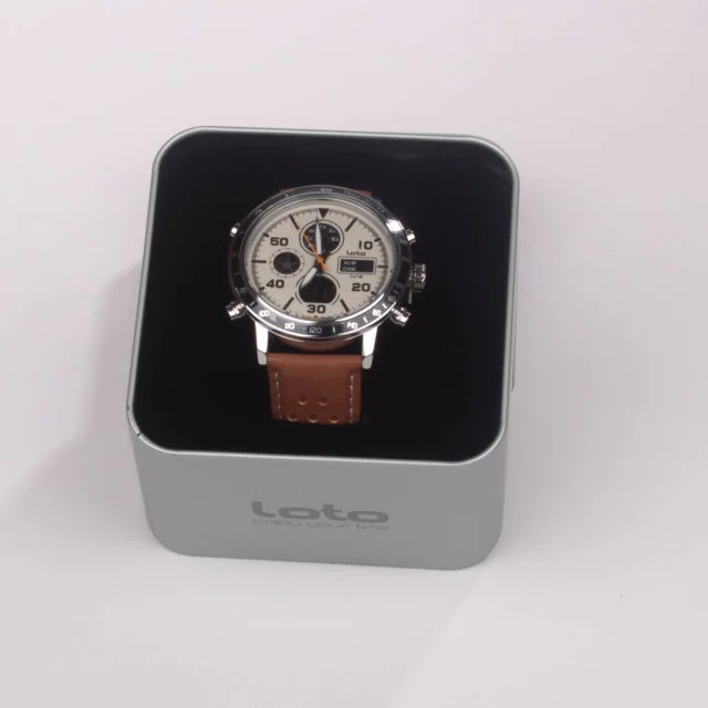 Reloj Loto original análogo con cronógrafos funcionales, diseñado para quienes buscan un accesorio elegante y versátil. Su caja metálica con acabados de alta calidad se combina con un pulso tipo cuero que aporta comodidad y estilo. Disponible en dos versiones: esfera clara con pulso marrón y esfera negra con pulso negro, ambos con detalles modernos que realzan su diseño. Incluye 6 meses de garantía por maquinaria y pila, respaldando su calidad y funcionamiento.