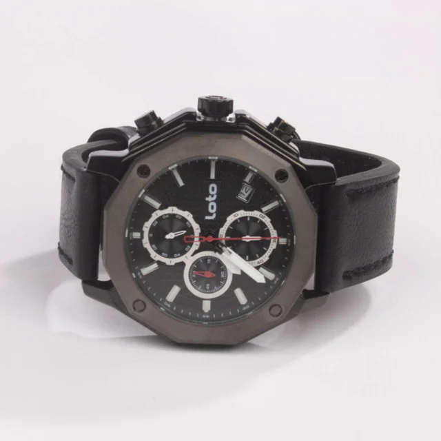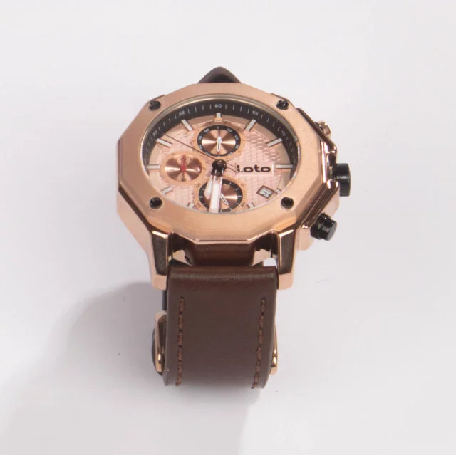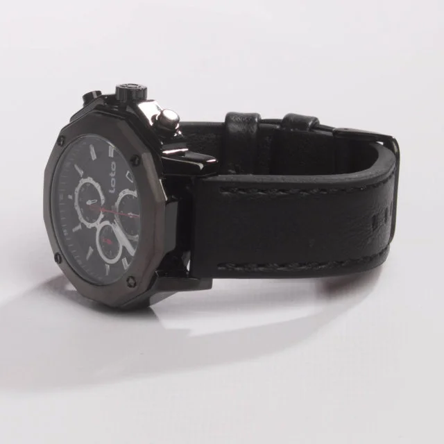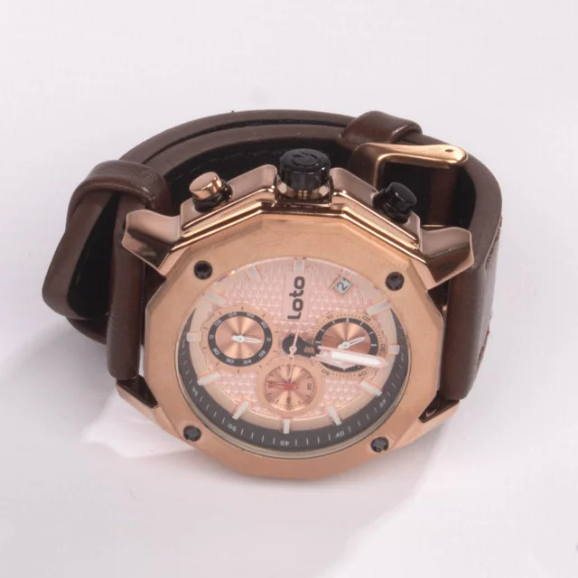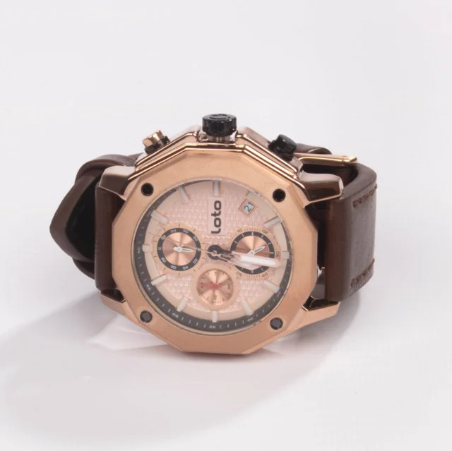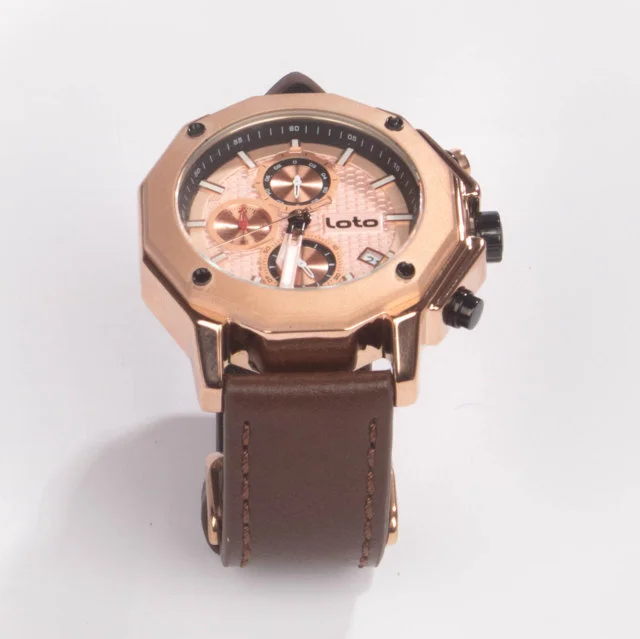 Reloj Loto original análogo con cronógrafos funcionales, diseñado con una caja metálica de forma octagonal y pulso tipo cuero que aporta comodidad y estilo clásico. Disponible en dos colores: caja oro rosa con pulso café y caja negra con pulso negro. Resistente a salpicaduras de agua, lavado de manos y lluvia ligera. Incluye 6 meses de garantía por maquinaria y pila.