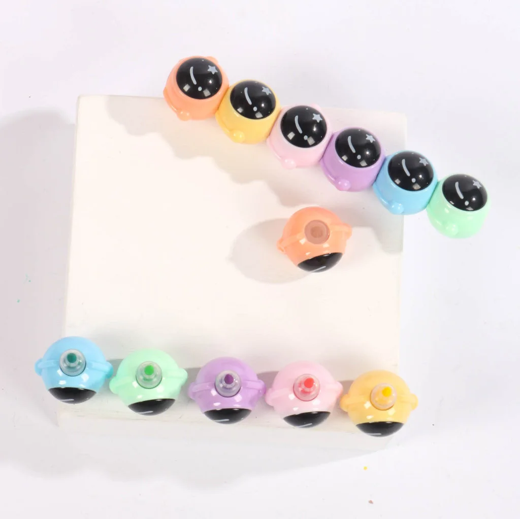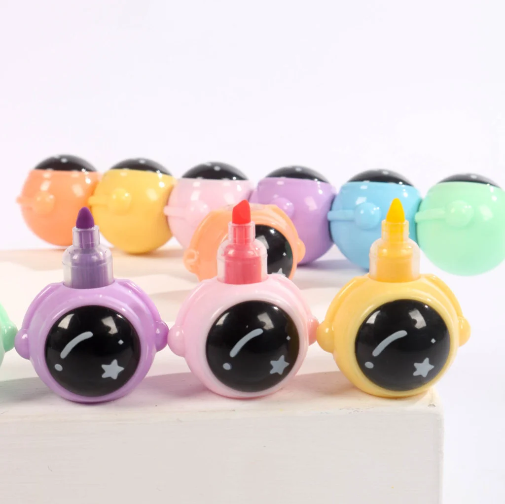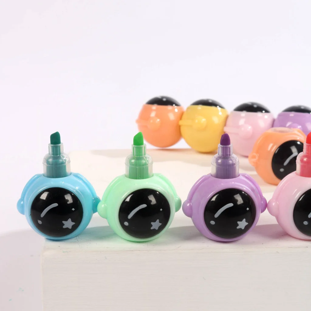 Lindos resaltadores con temática espacial, perfectos para darle un toque divertido a tu escritorio o estuche. Son apilables, lo que los hace fáciles de organizar y llevar a todas partes.