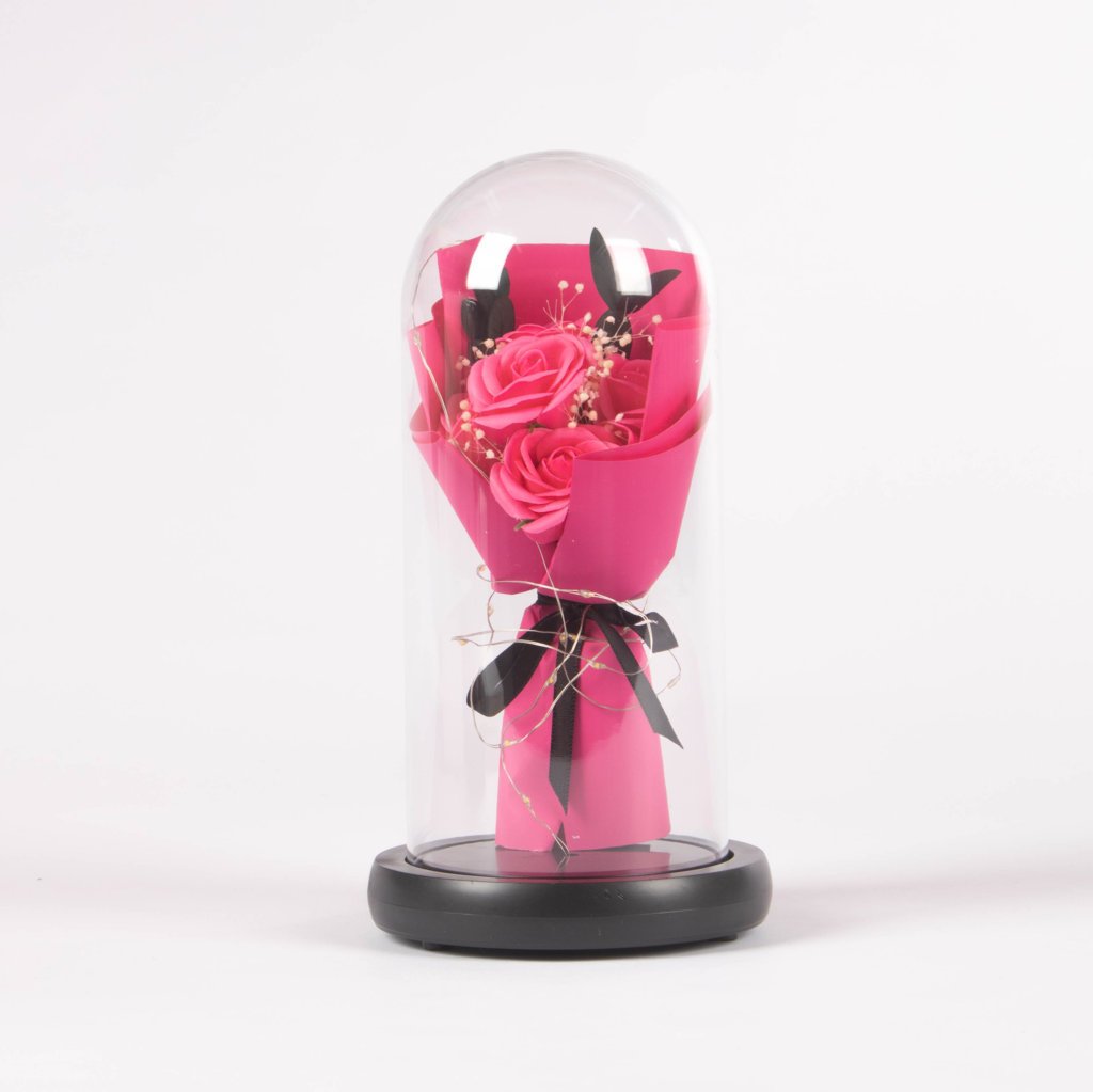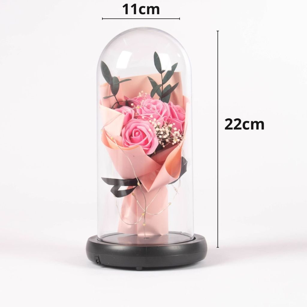 Soy la opción ideal para esos momentos donde deseas que tu regalo perdure por toda la eternidad. Mi apariencia real te hará sentir que estás obsequiando una rosa natural, pero sin los inconvenientes de que se marchite. Vengo con una luz LED que le da un toque especial a tu obsequio, y puedes elegir entre 3 colores diferentes.