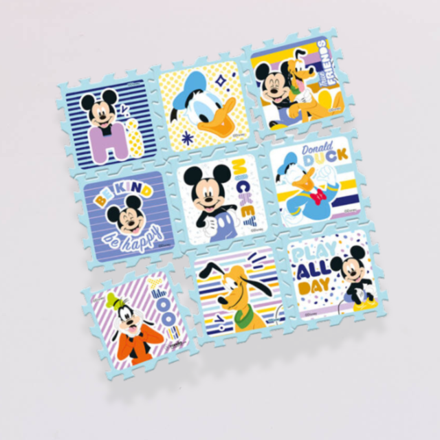 Tapete decorativo en caucho espuma con diseño de Mickey Club House . Ideal para decorar, jugar y proteger a los más pequeños mientras estimulan su percepción visual de figura y fondo. Suave, seguro y colorido, perfecto para crear un espacio cómodo y divertido para los niños.