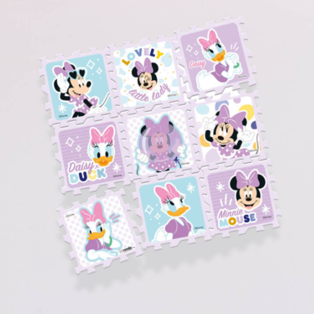 Tapete decorativo en caucho espuma con diseño de Minnie Bow-Tique . Ideal para decorar, jugar y proteger a los más pequeños mientras estimulan su percepción visual de figura y fondo. Suave, seguro y colorido, perfecto para crear un espacio cómodo y divertido para los niños.