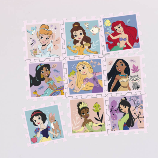Tapete decorativo en caucho espuma con diseño de Princesas. Ideal para decorar, jugar y proteger a los más pequeños mientras estimulan su percepción visual de figura y fondo. Suave, seguro y colorido, perfecto para crear un espacio cómodo y divertido para los niños.