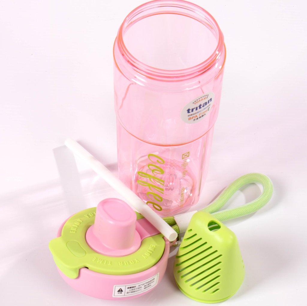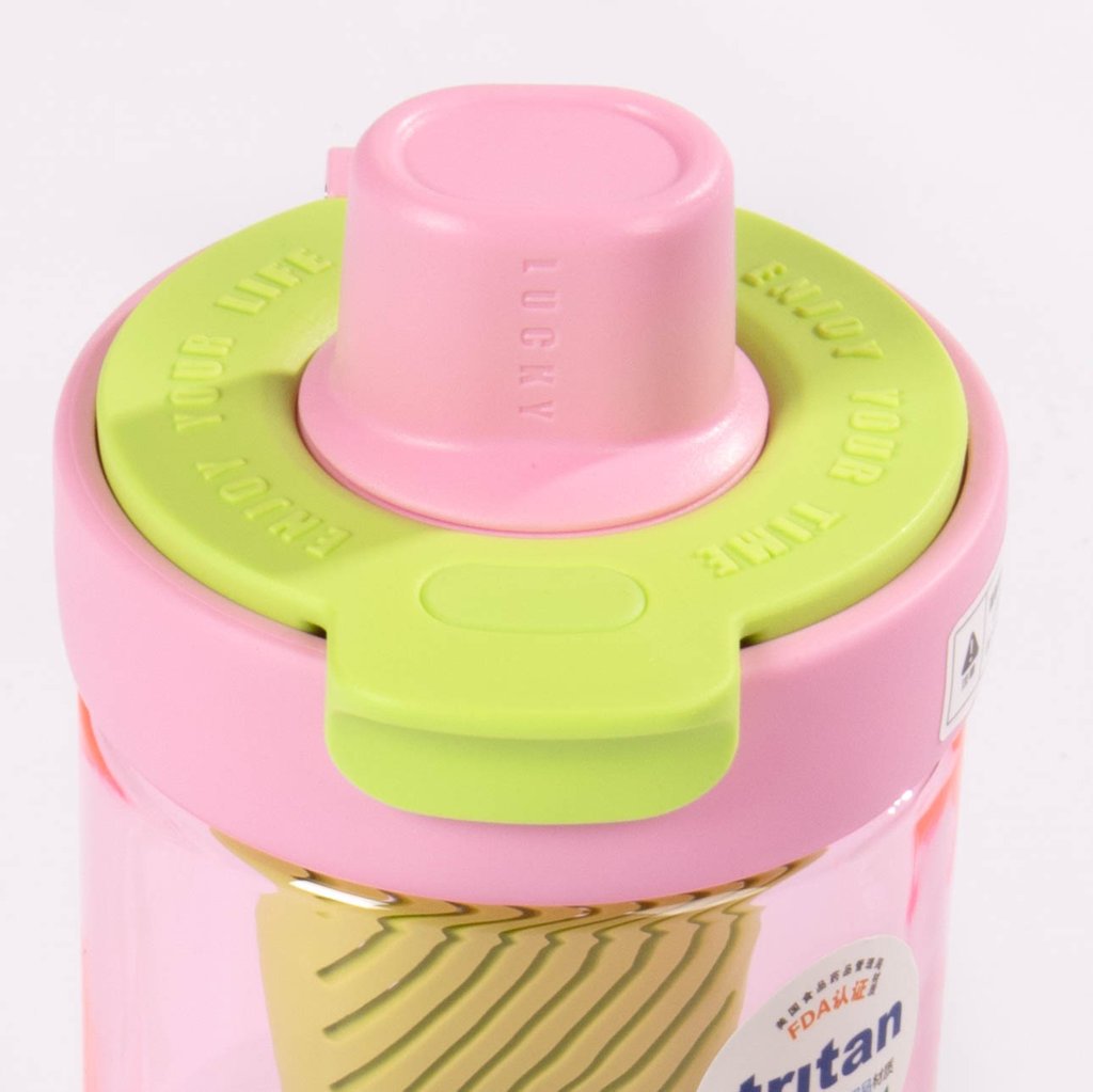 Termo elaborado en plástico de alta calidad, disponible en 4 colores surtidos para que puedas escoger tu favorito. Su diseño práctico lo convierte en la opción ideal para acompañarte a todas partes, manteniéndote hidratado en todo momento.