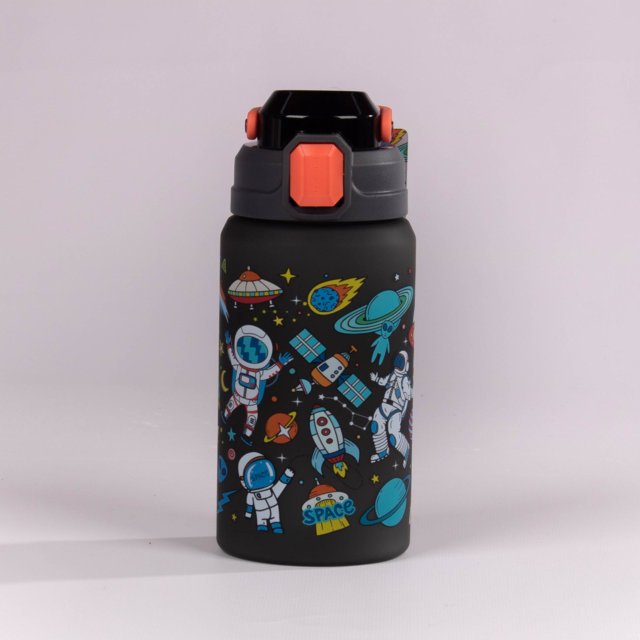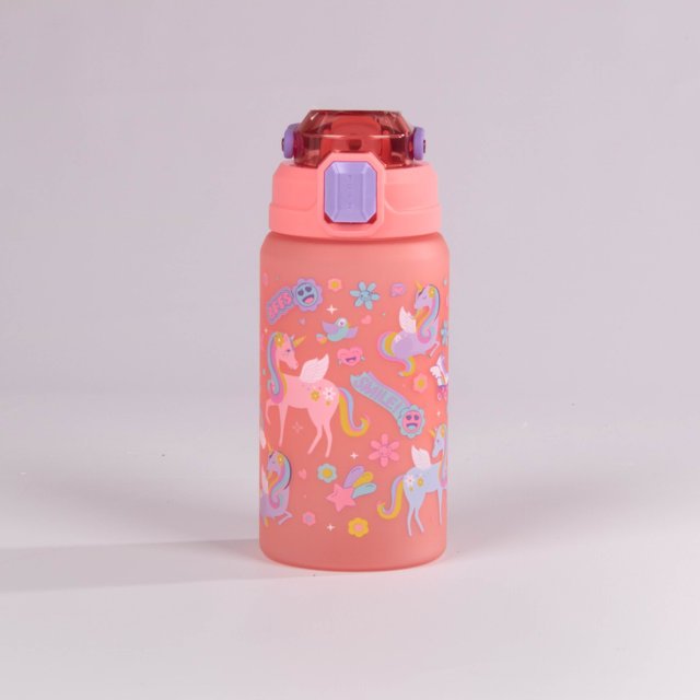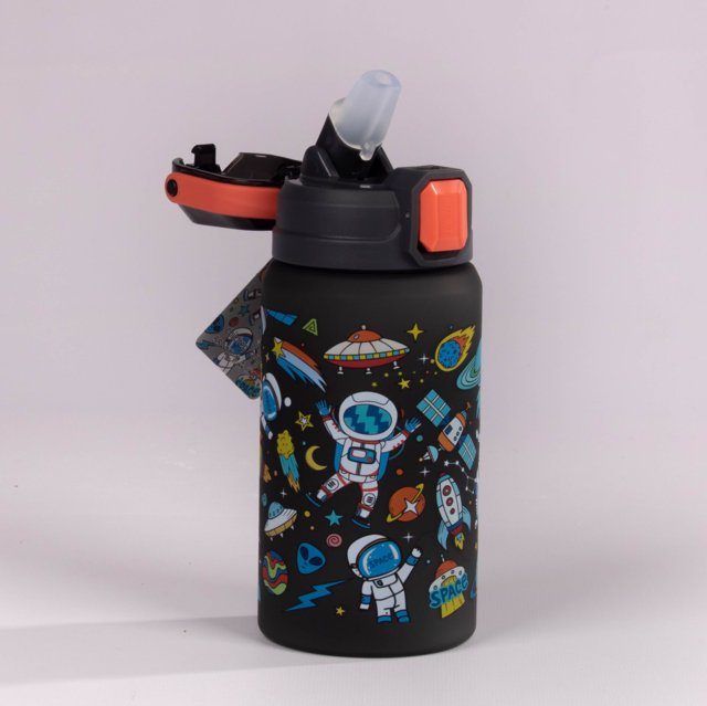 termo plástico de 550 ml. Su diseño colorido con ilustraciones de sirenas, dinosaurios, unicornios y el espacio lo convierte en el compañero ideal para el colegio, viajes o actividades al aire libre .