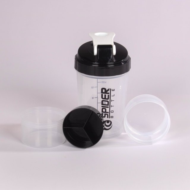 Su diseño ergonómico con tapa a rosca y boquilla abatible garantiza un cierre seguro y sin fugas. Además, cuenta con compartimentos desmontables para almacenar porciones de proteína o cápsulas, perfectos para el gimnasio, la oficina o los viajes.