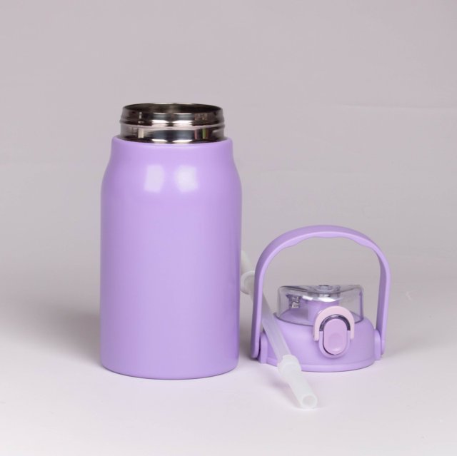 Fabricado en acero inoxidable de alta calidad, resistente a golpes y caídas moderadas. Cuenta con interior térmico de doble capa que conserva el calor o el frío por varias horas. Incluye tapa hermética que también funciona como vaso y correa lateral para facilitar su transporte. Disponible en varios colores metálicos.
