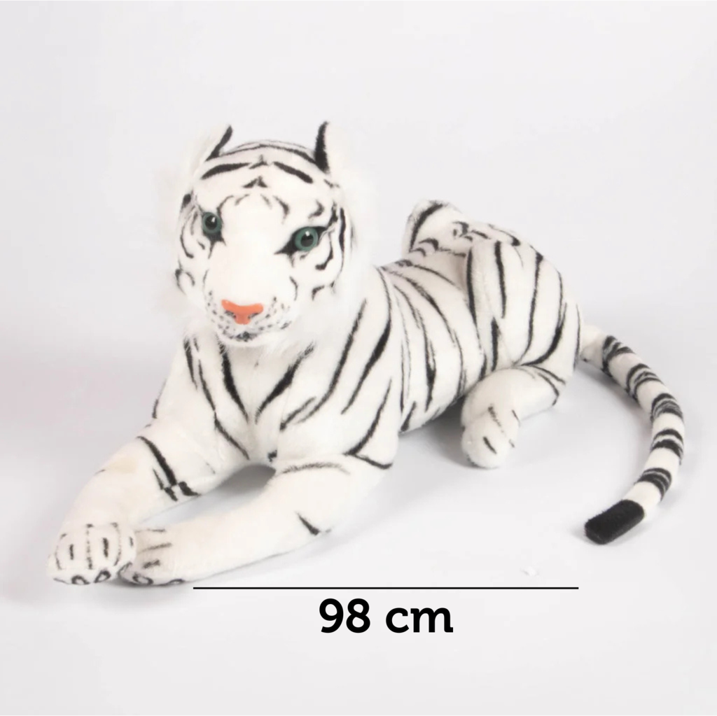 Majestuoso peluche de tigre, disponible en un único color. Con un tamaño de 98 cm, está elaborado en tela antialérgica, siendo ideal para niños y adultos que aman los animales y buscan un peluche adorable y realista. Perfecto para regalar en cualquier ocasión especial.